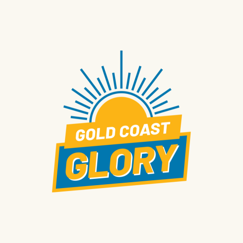 The Gold Coast Glory logo has Ocean Blue, White, and Golden Yellow colors.